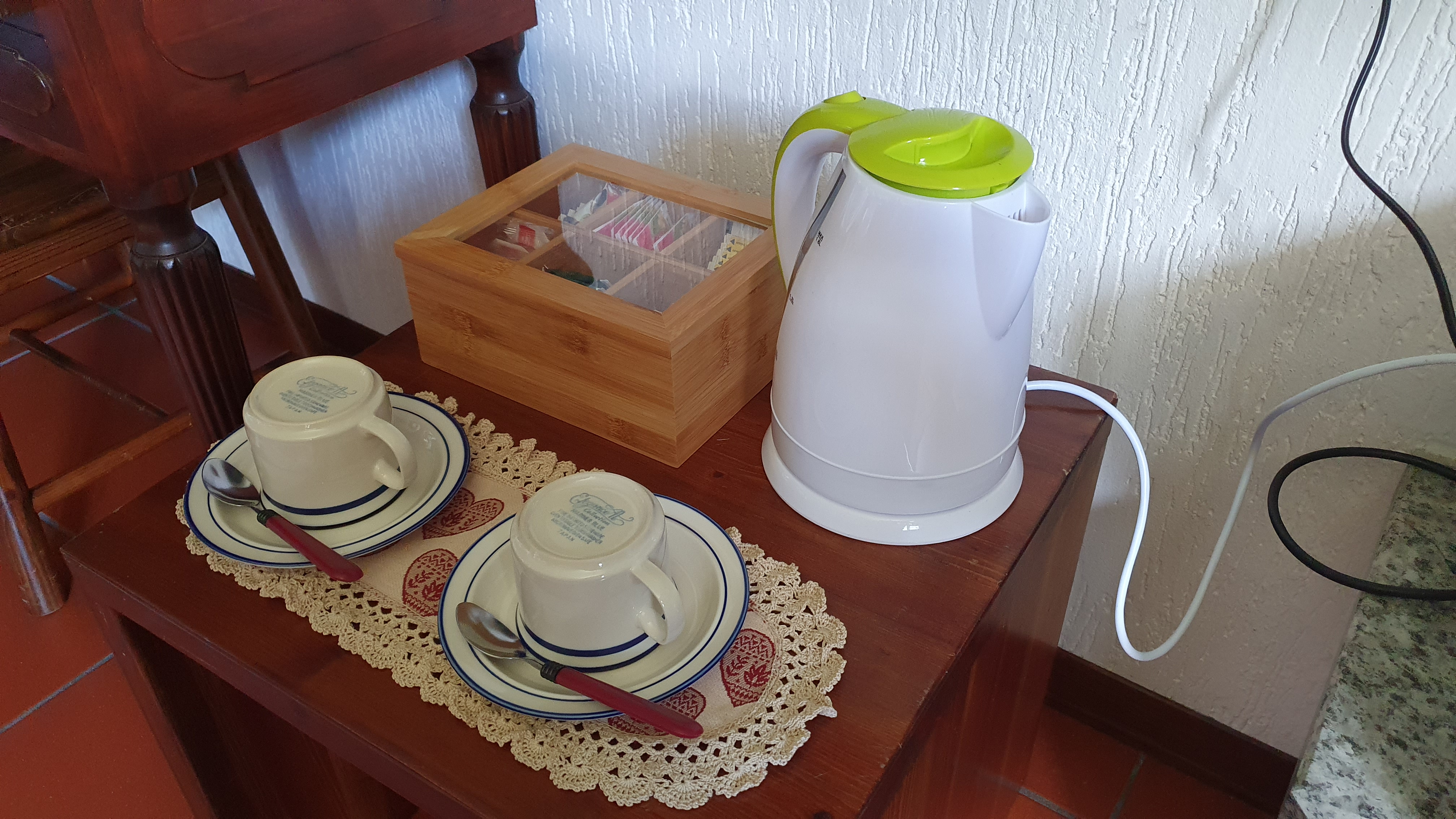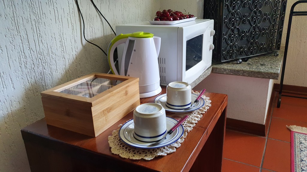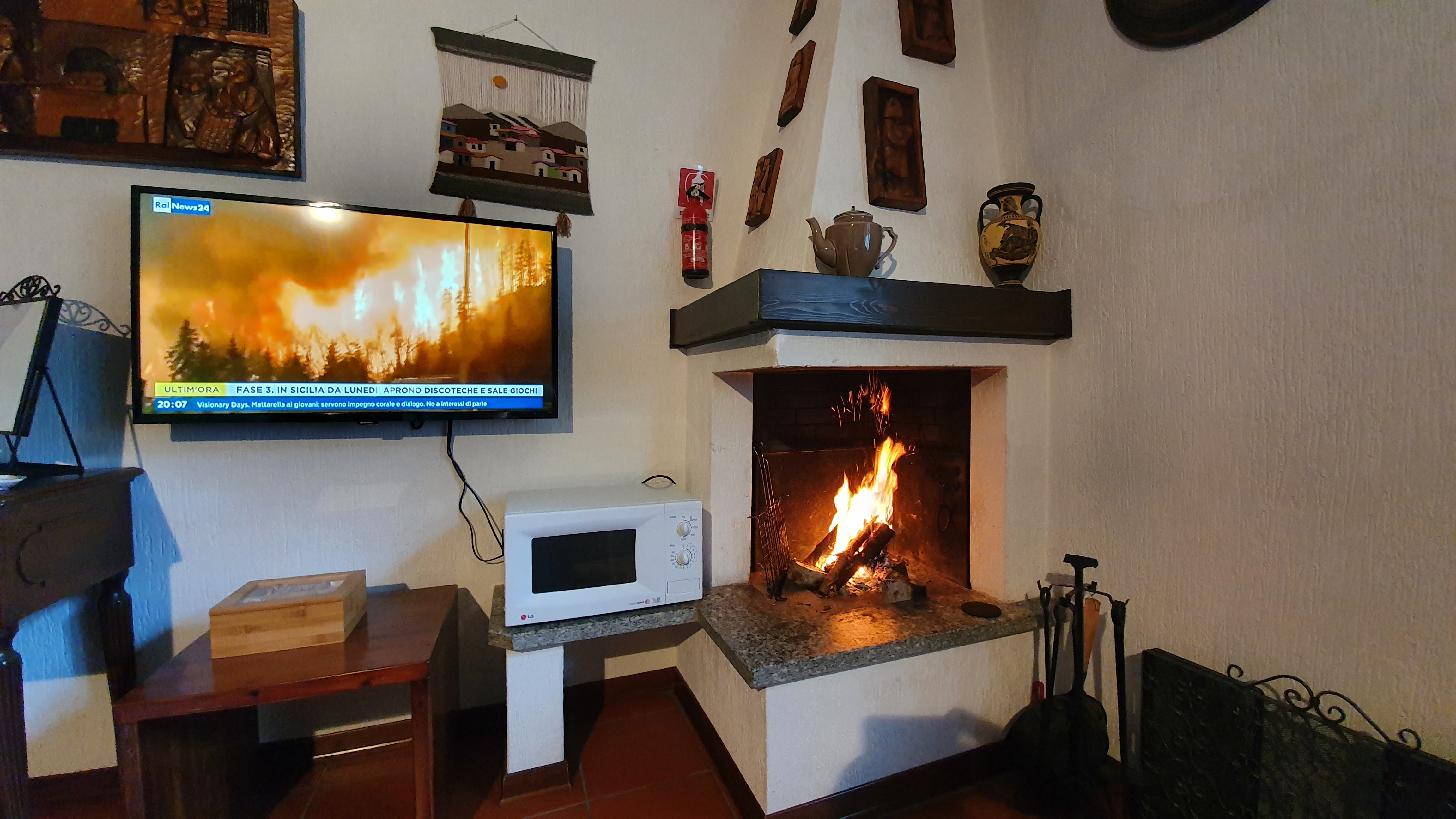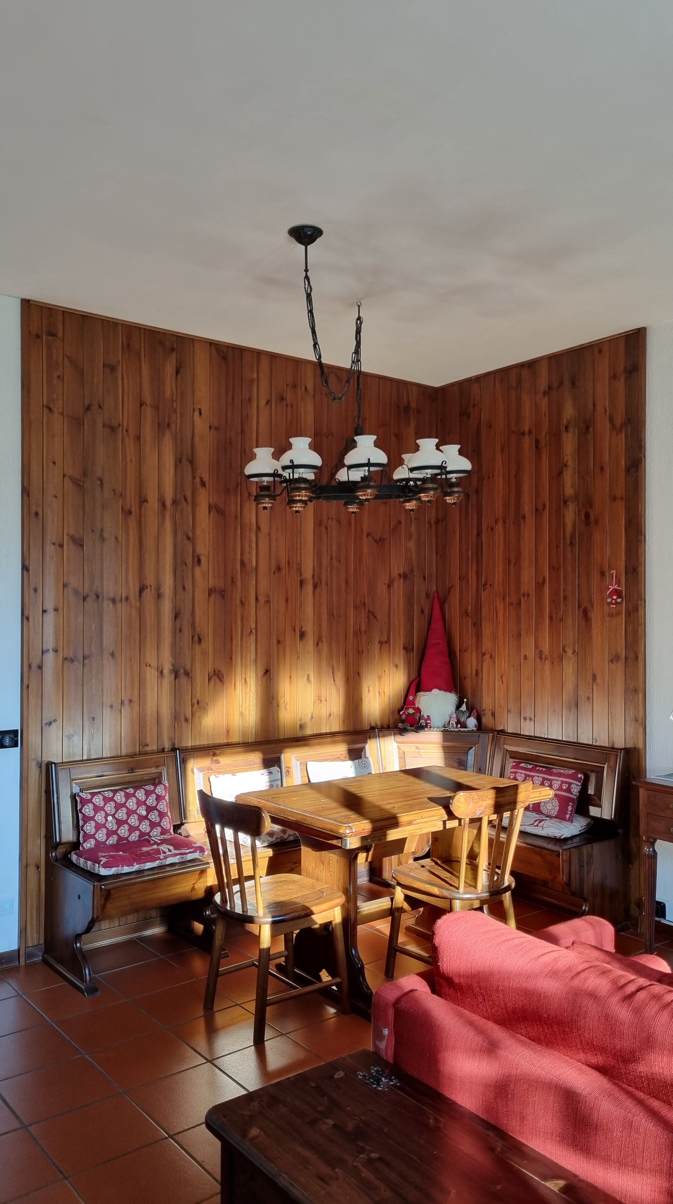 La zona giorno, ampia e molto luminosa, dispone di camino, tavolo da pranzo, televisione a schermo piatto, divano letto che si trasforma in due letti singoli, scrivania con depliant informativi e angolo cottura completo di piastre elettriche, lavastoviglie, fornetto elettrico, forno a microonde, piatti, stoviglie, frigorifero, bollitore.
