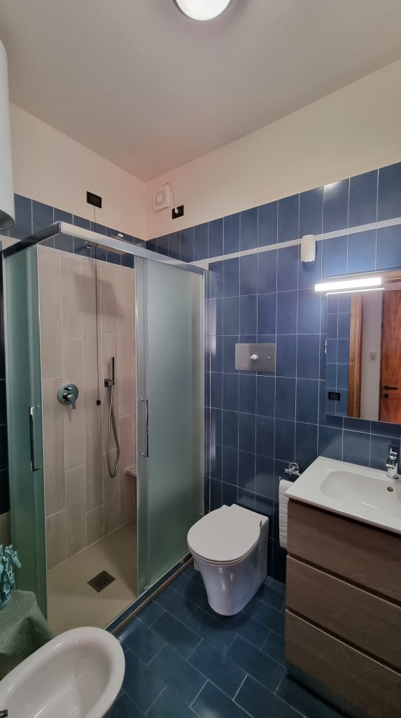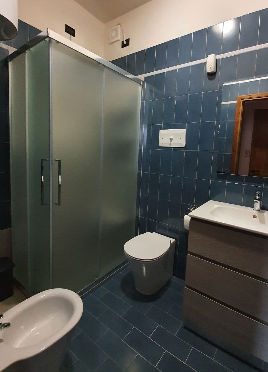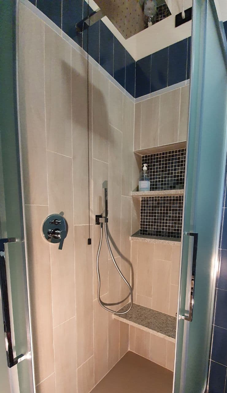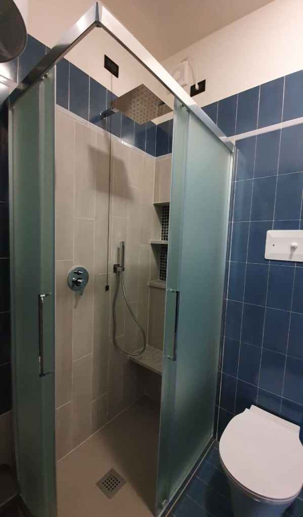 Il bagno è fornito di sapone, bagnoschiuma, shampoo e asciugacapelli.
