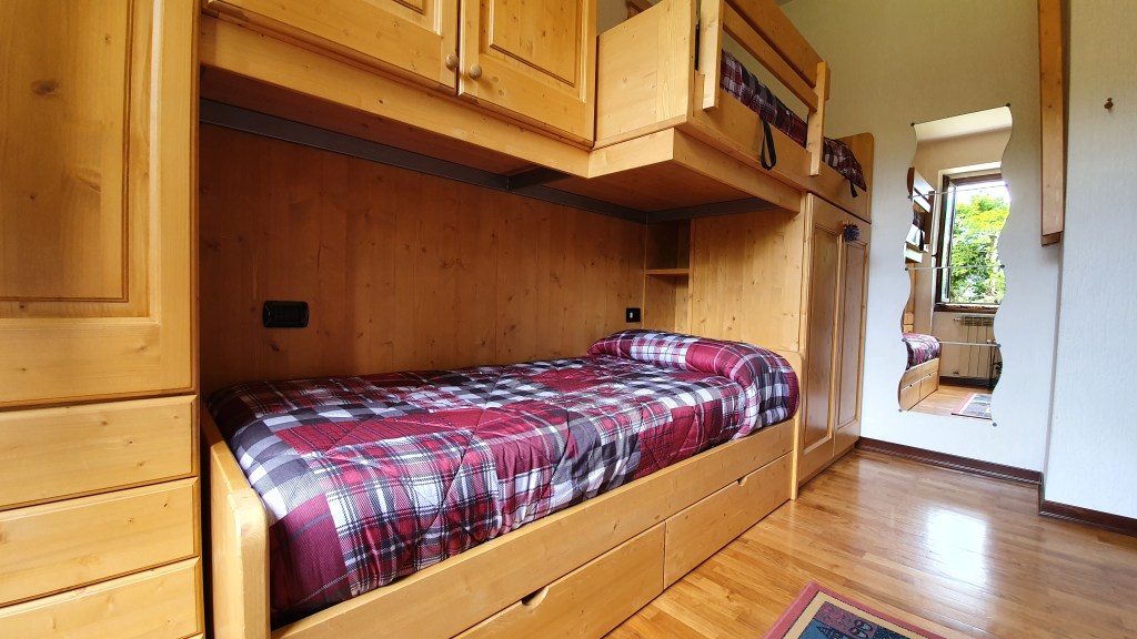 La cameretta dispone di tre letti singoli e di armadio guardaroba con ampi cassetti. Nell’armadio sono disponibili anche diversi giochi da tavolo per trascorrere piacevoli serate.